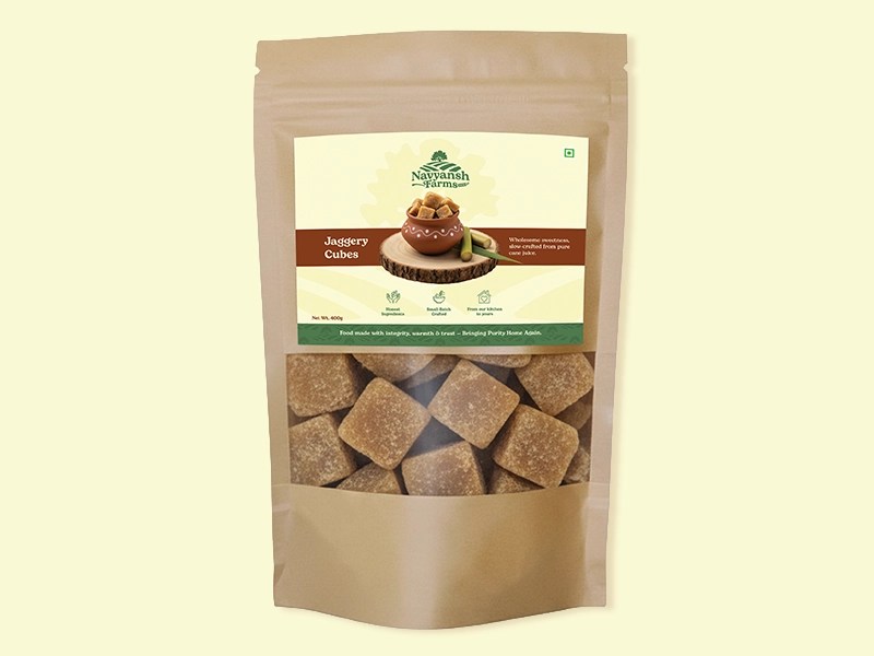 At Navyansh Farms, our golden jaggery cubes are slow-crafted from fresh sugarcane—pure, chemical-free, and mineral-rich—preserving authentic taste, texture, and traditional goodness in every bite.