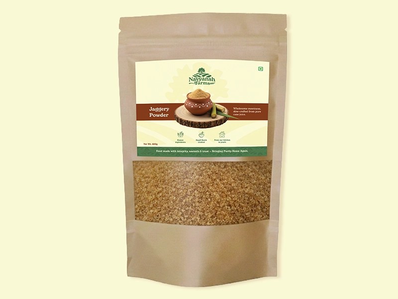 At Navyansh Farms, our golden jaggery powder is slow-crafted from fresh sugarcane—pure, chemical-free, and mineral-rich—preserving traditional taste and wholesome goodness in every spoon.